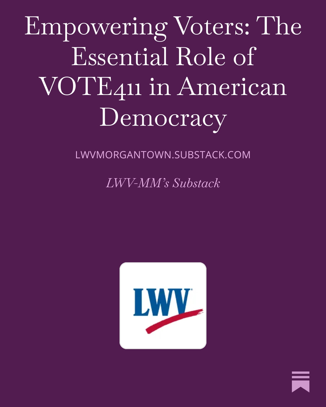 Early Voting begins April 29. If you’ve never used VOTE411.org now’s the time! https://lwvmorgantown.substack.com/p/empowering-voters-the-essential-role